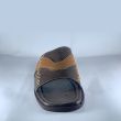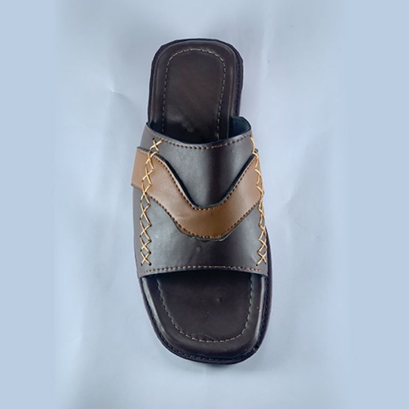 Dark brown slippers with light brown line design
