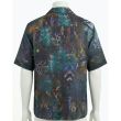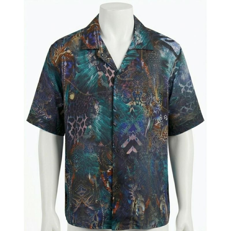 Dark Multicolor Feathers and Animal Print Short-Sleeve Button-Down Shirt