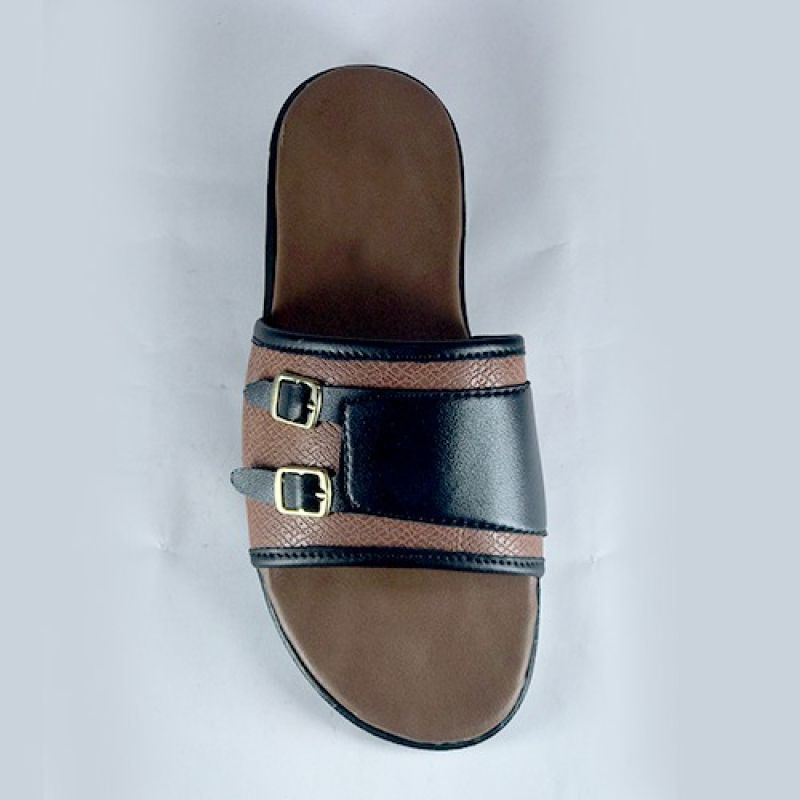Designer brown slippers with buckle