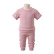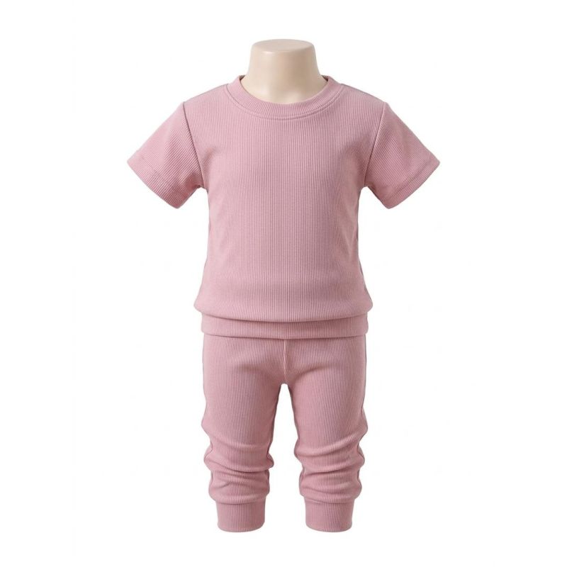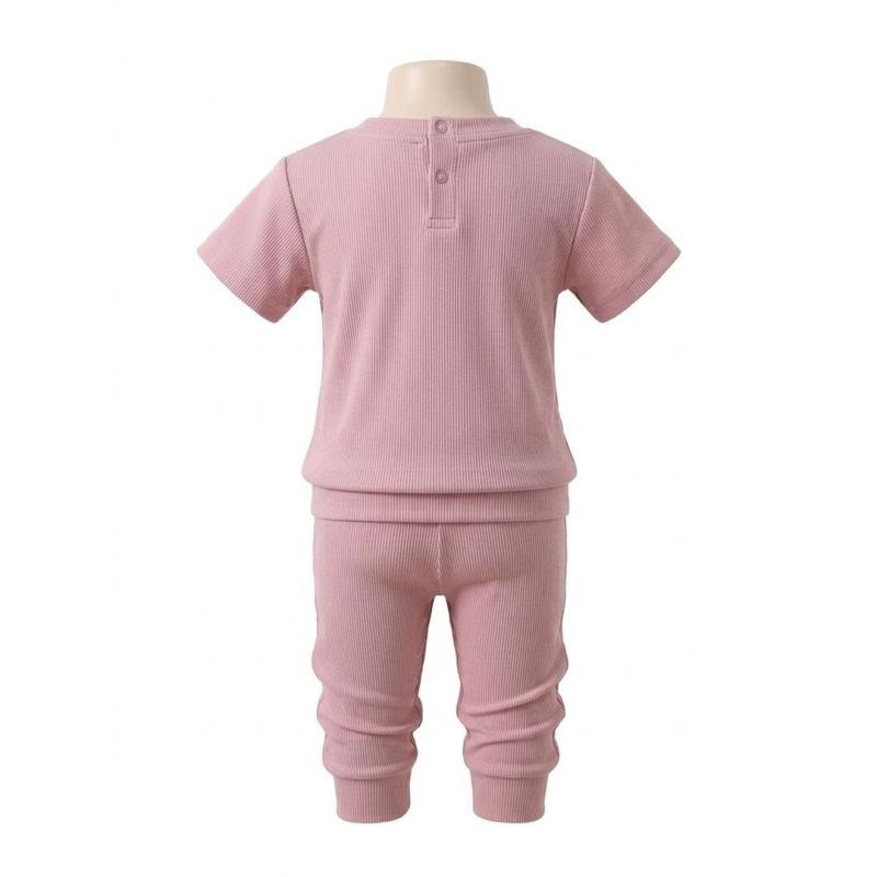 Dusty Pink Ribbed Short-Sleeve Top and Leggings Set with Button Back Detail
