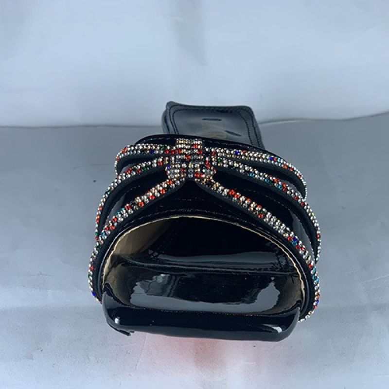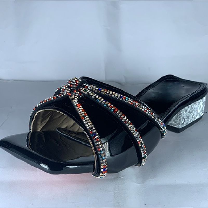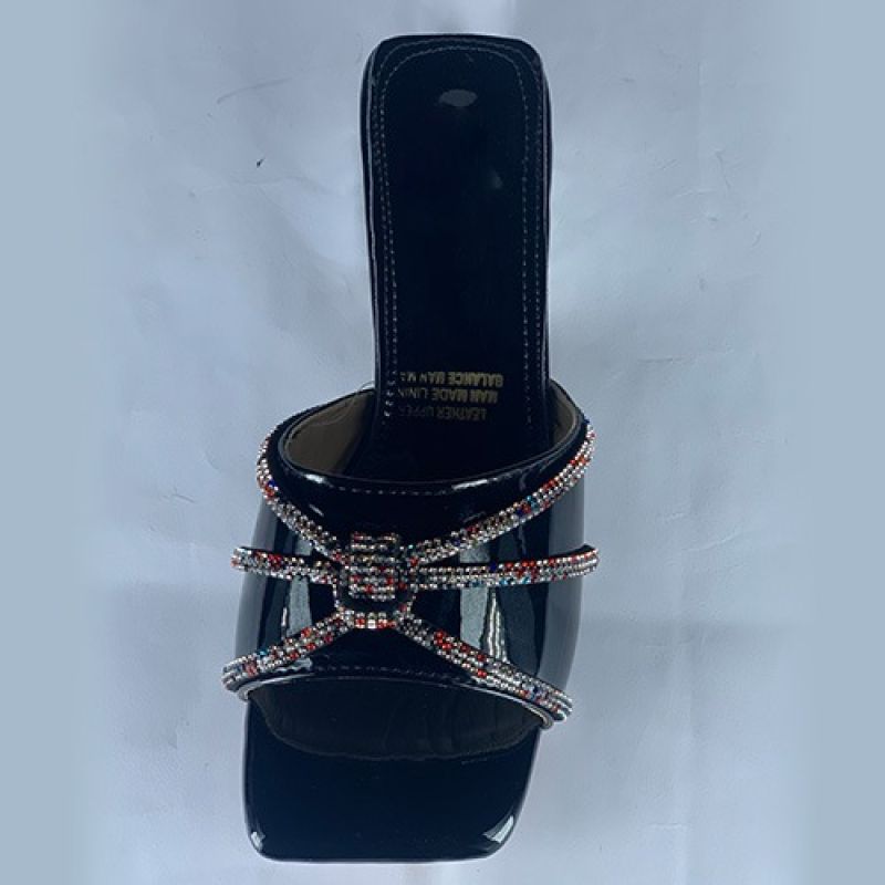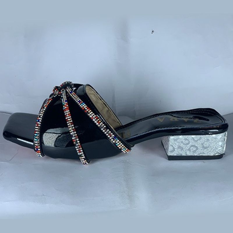 Elegant ladies black slippers with silver heels