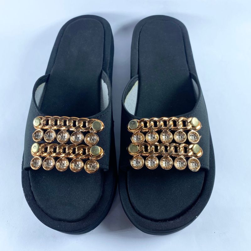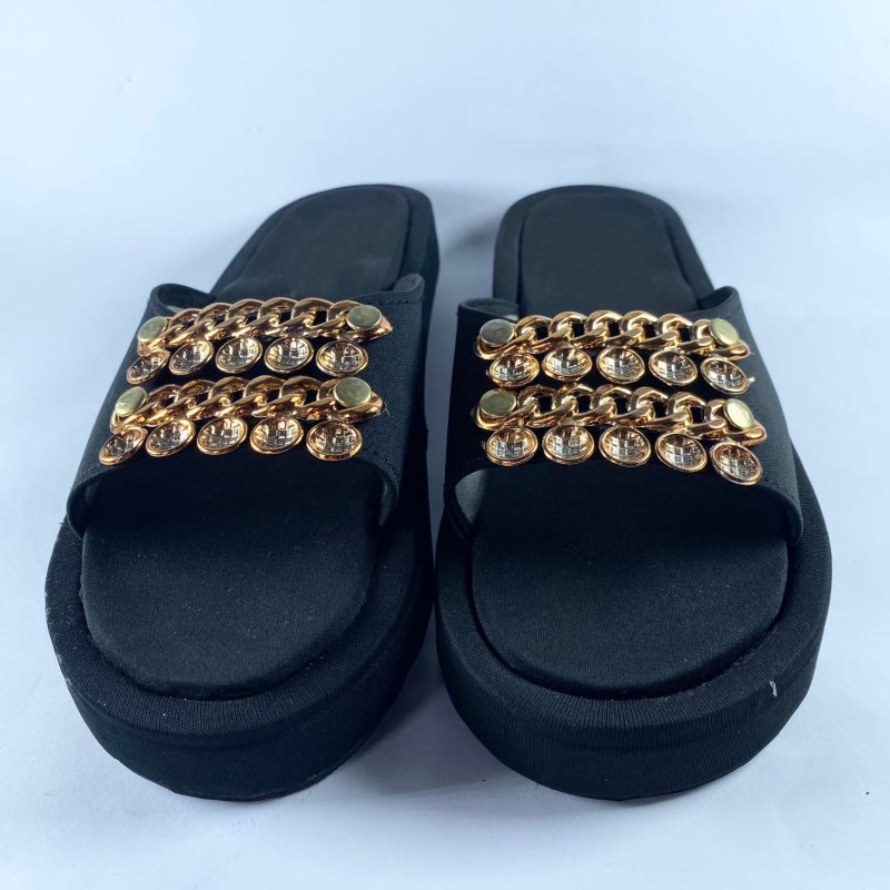 Fancy Men Women's Flat Slide - Black And Gold