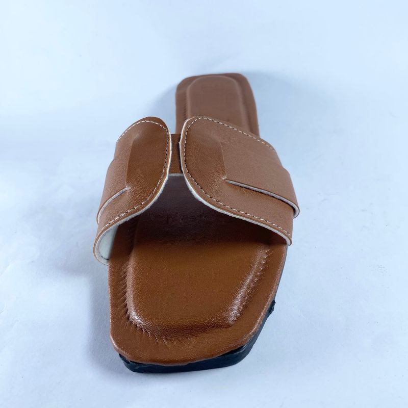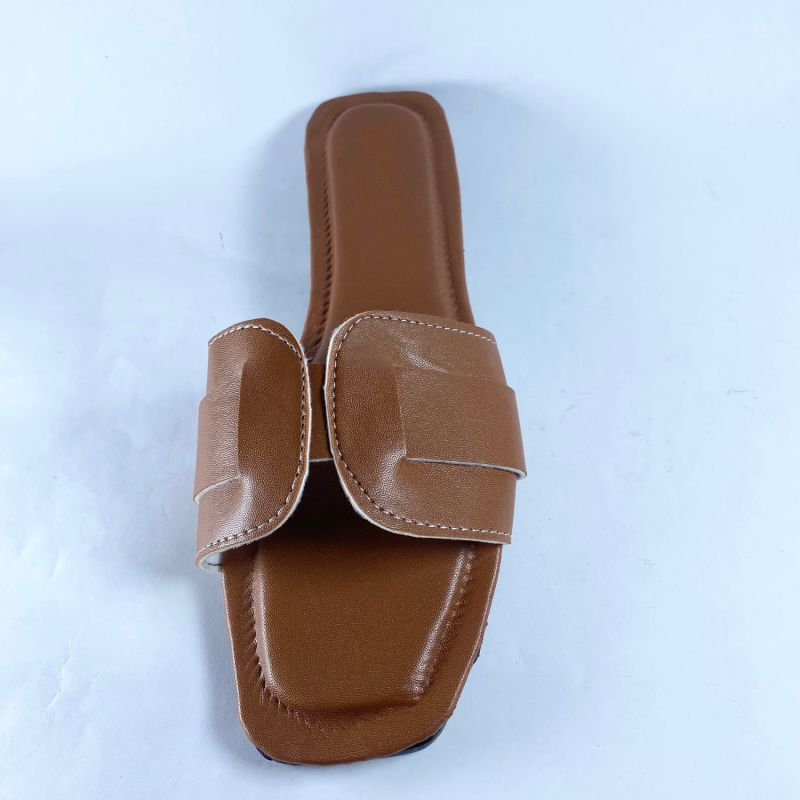 Fashionable Ladies Flat Slides - Light Brown