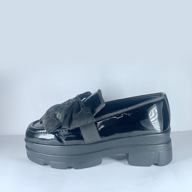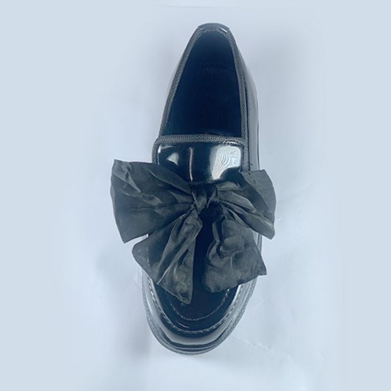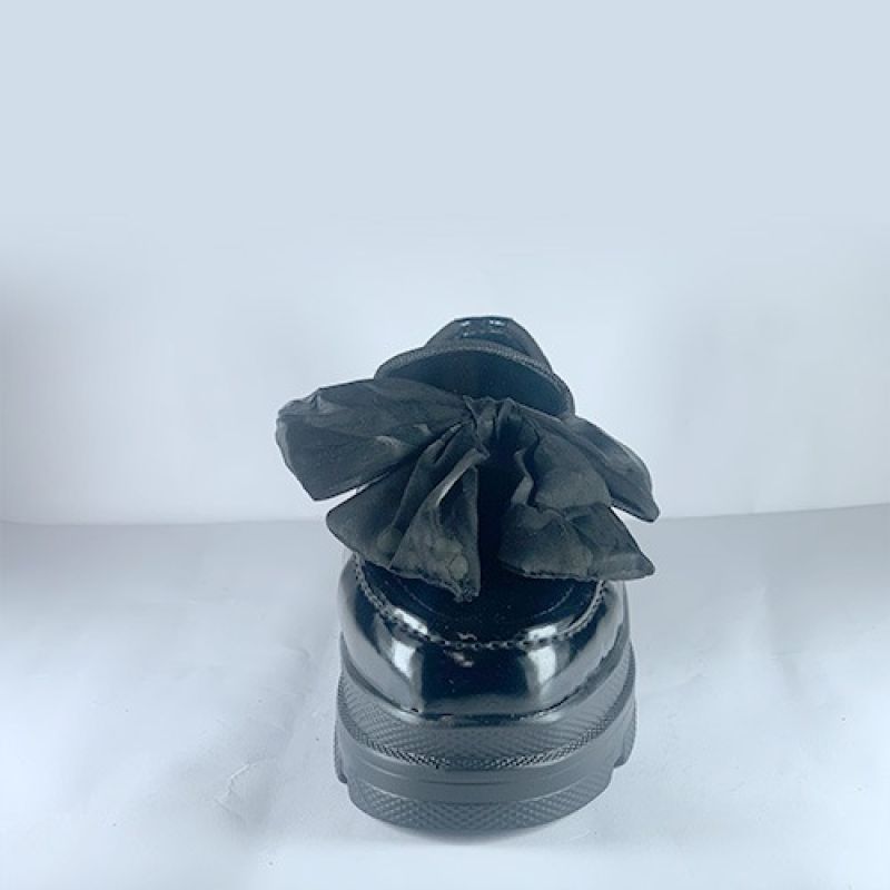 Female black shoe with bowtie material
