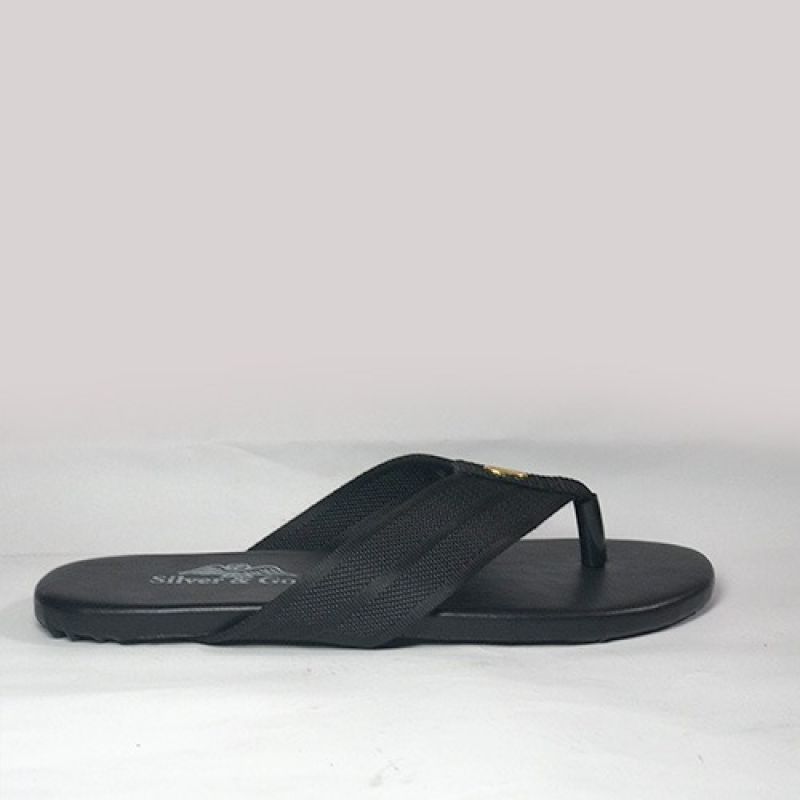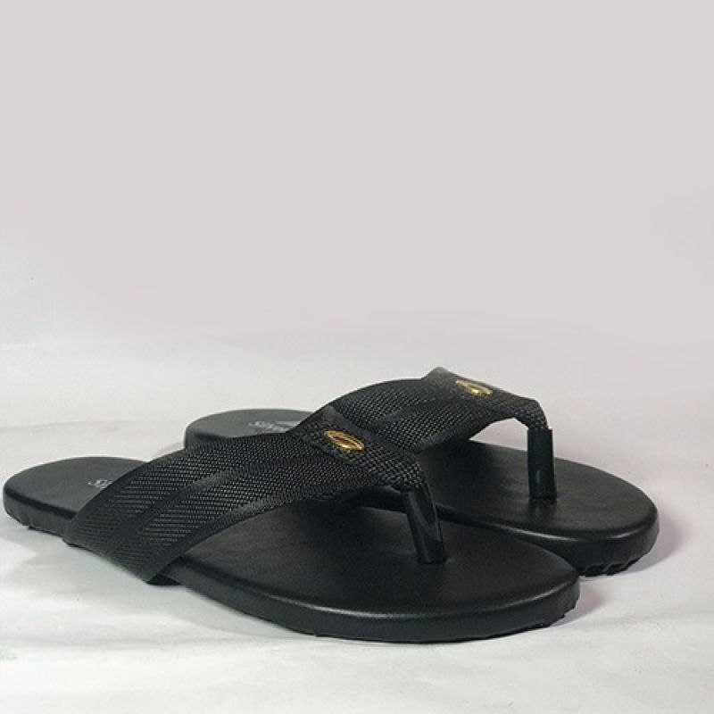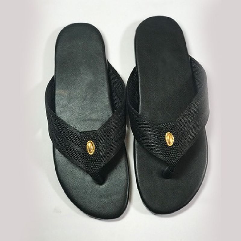 Flat plain black slippers for men