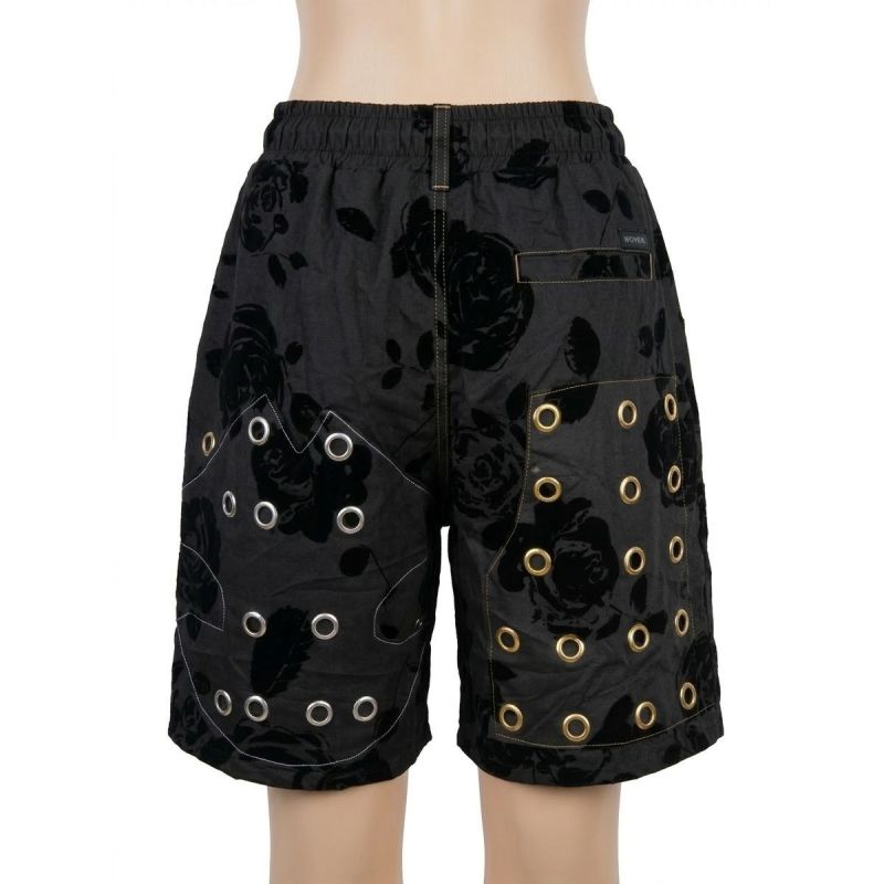 Floral Jacquard Grommet-Detail Shorts