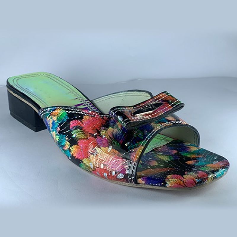 Flowered design ladies slippers heel