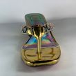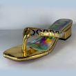 Golden shiny ladies sandal with low heel