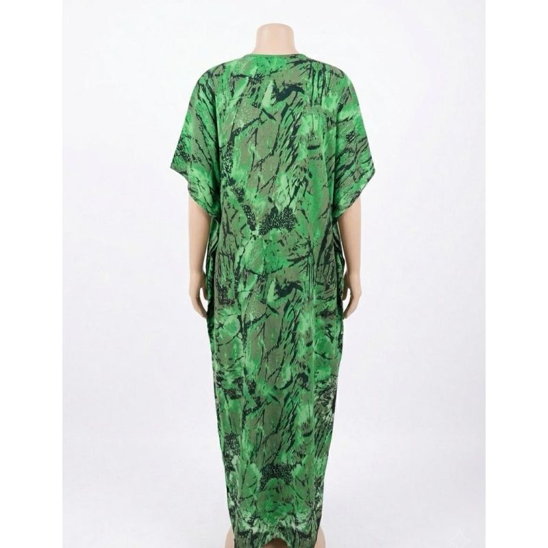 Green African Dashiki Kaftan Maxi Dress with Black Panel
