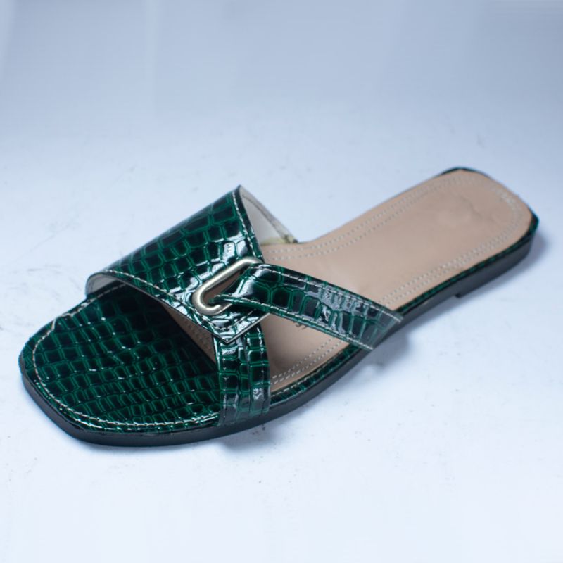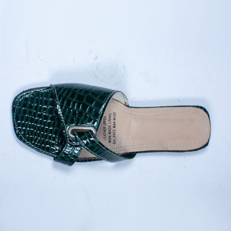 Green Crocodile Embossed Design Ladies Flat Slipper