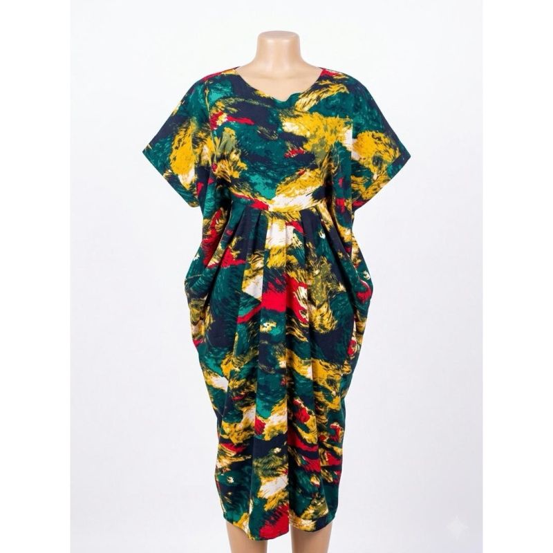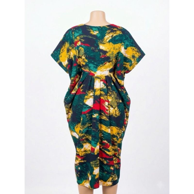 Green, Yellow, and Red Abstract Brushstroke Print Batwing Dress