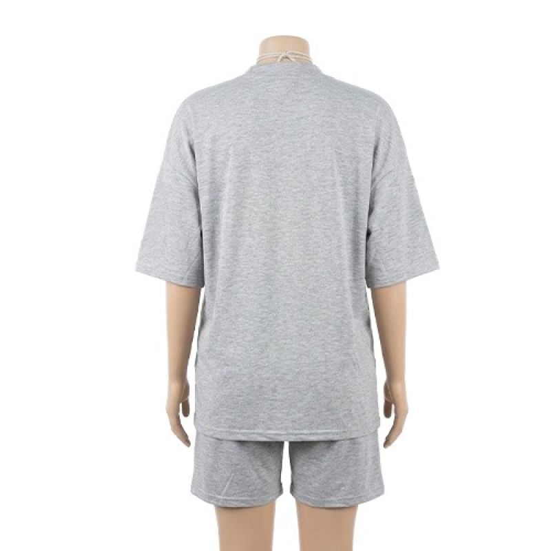 Grey Oversized T-Shirt & Shorts Lounge Set
