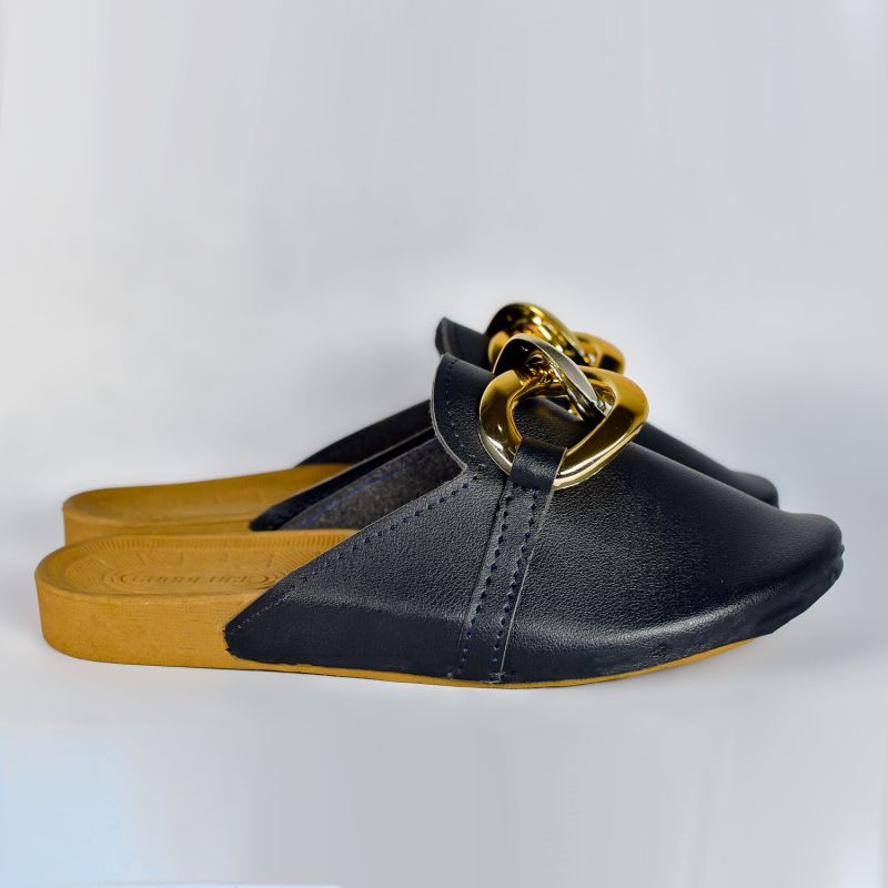 Half Cover Black Slide Leather Slipper for Men And Women