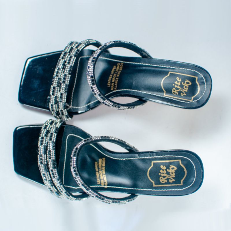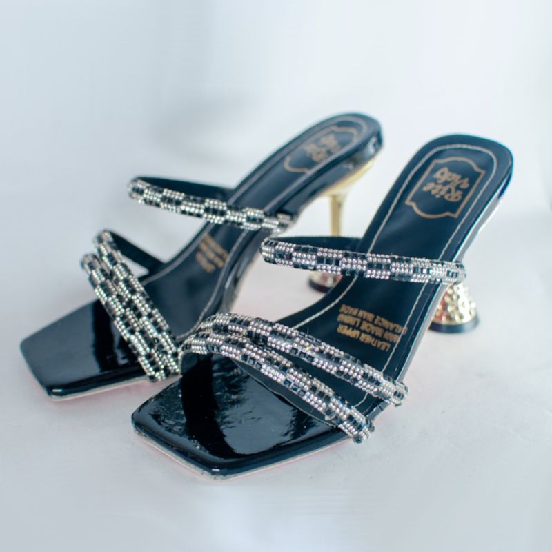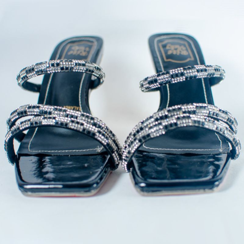 High Heeled Slippers Women's Rhinestone Shoes Black And Sliver Colour