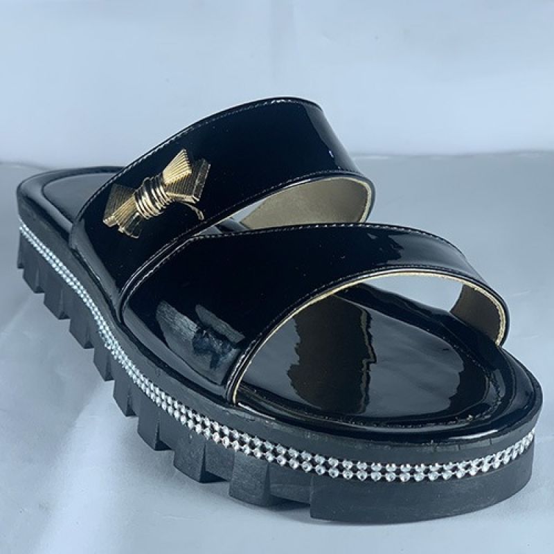 Ladies black slipper with fancy