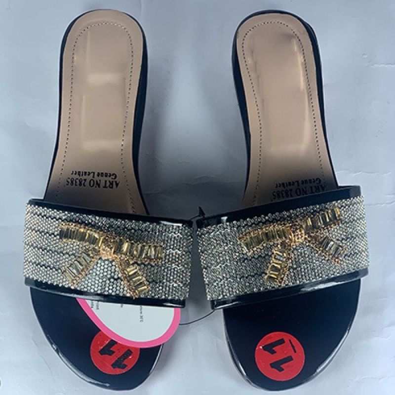 Ladies Black slippers with a shiny silver heel
