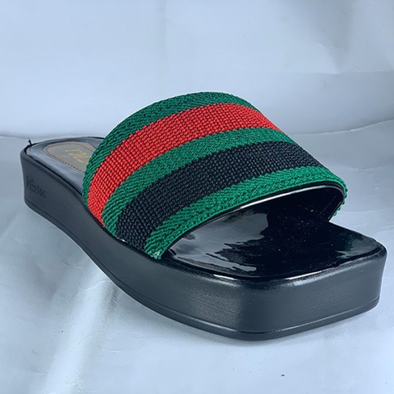 Ladies black slippers with high sole