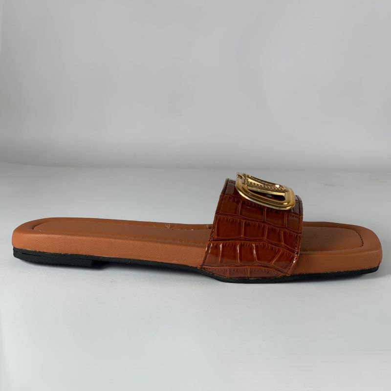 Ladies casual brown colour embroidered design flat slides