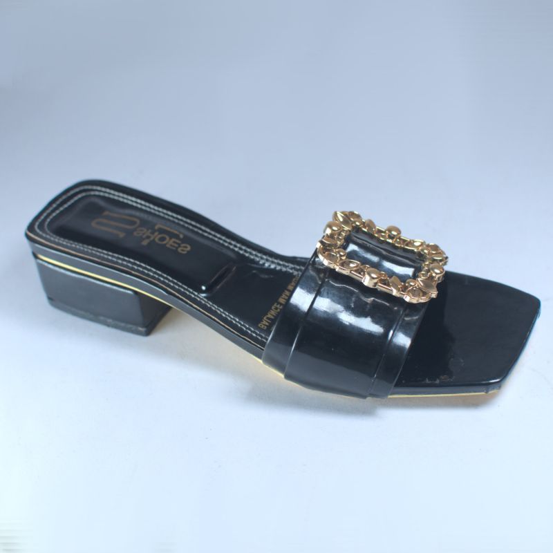 Ladies Fashion Block Low Heel -Black