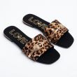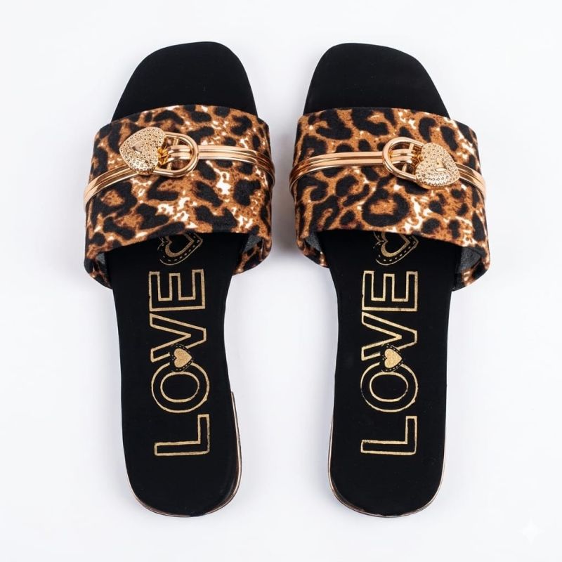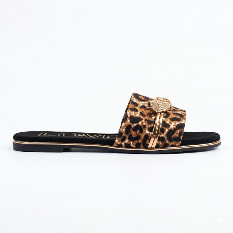 Ladies flat slippers with animal skin material and fancy