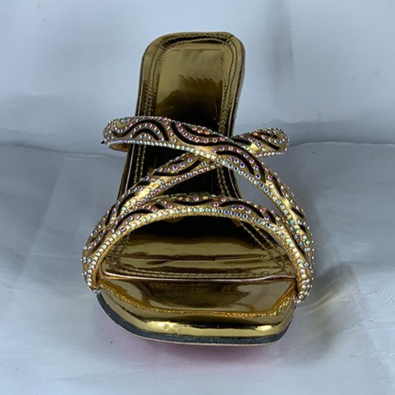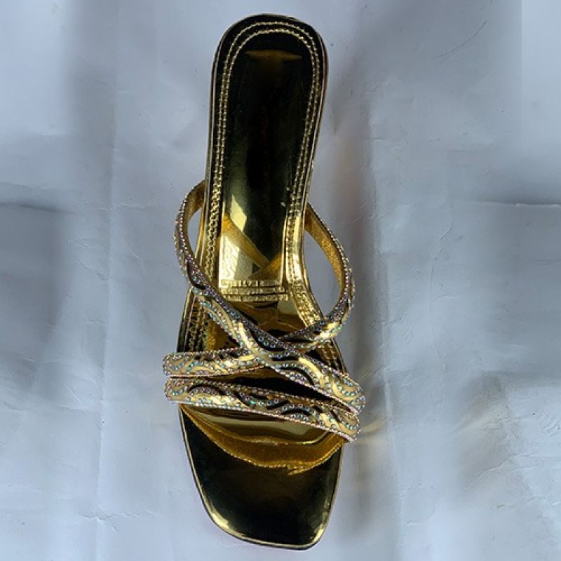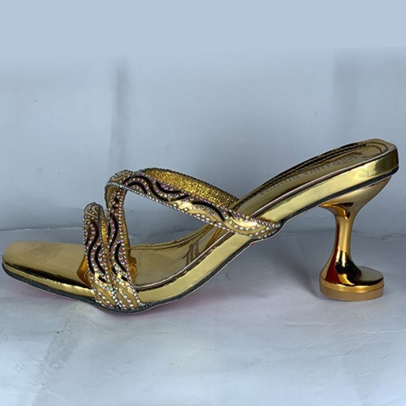 Ladies golden slippers heel with cross style design