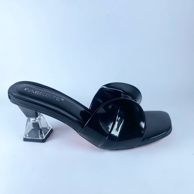 Ladies Quality Glass Heel Sandal Shoe-Black