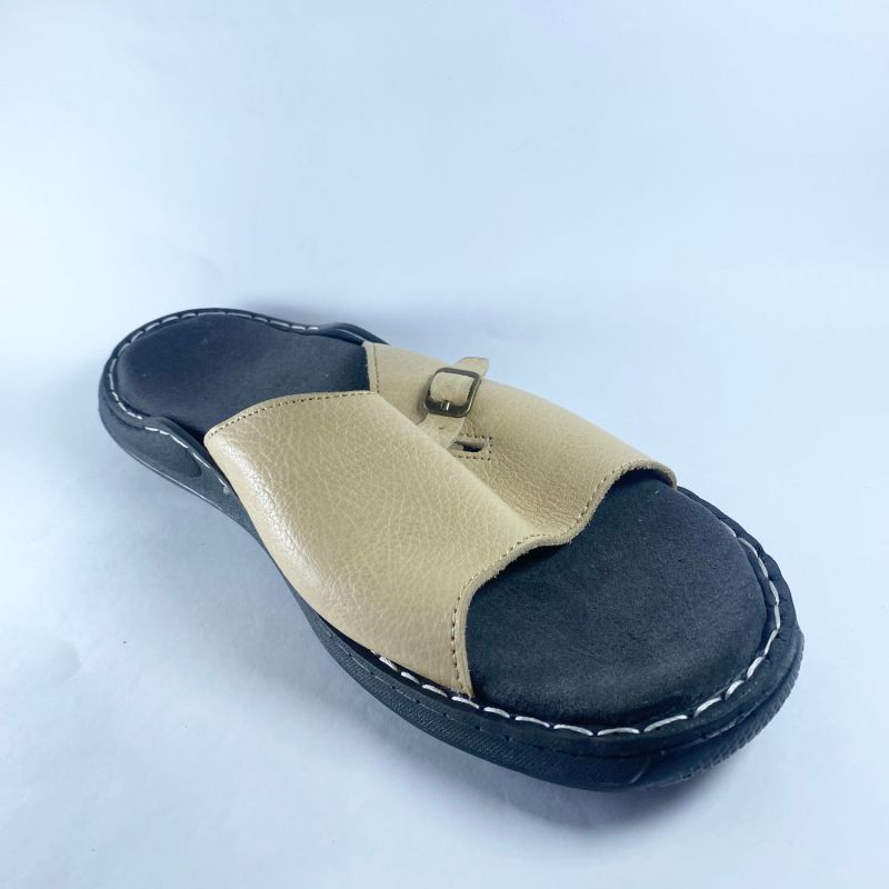 Leather Quality Men's Cream Colour Top Slide Slipper