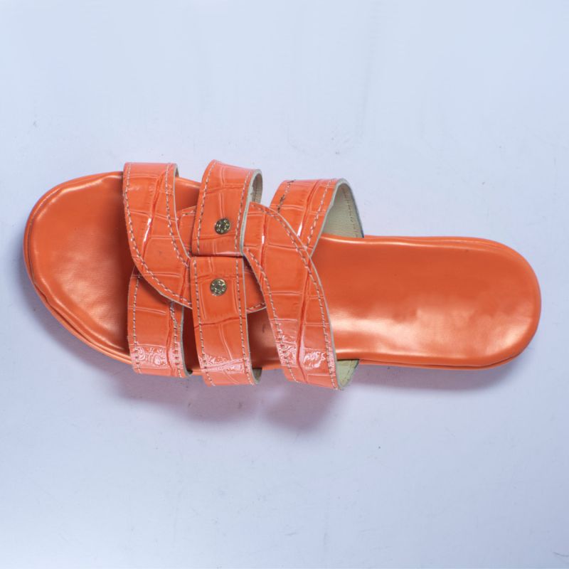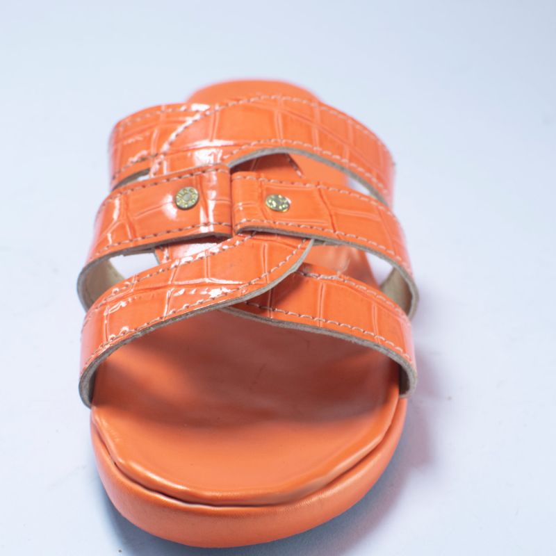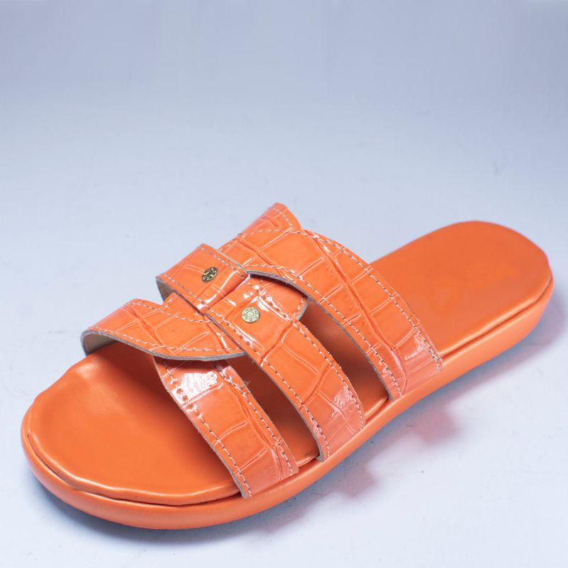 Light Brown Crocodile Embossed Leather Slipper Slide For Ladies