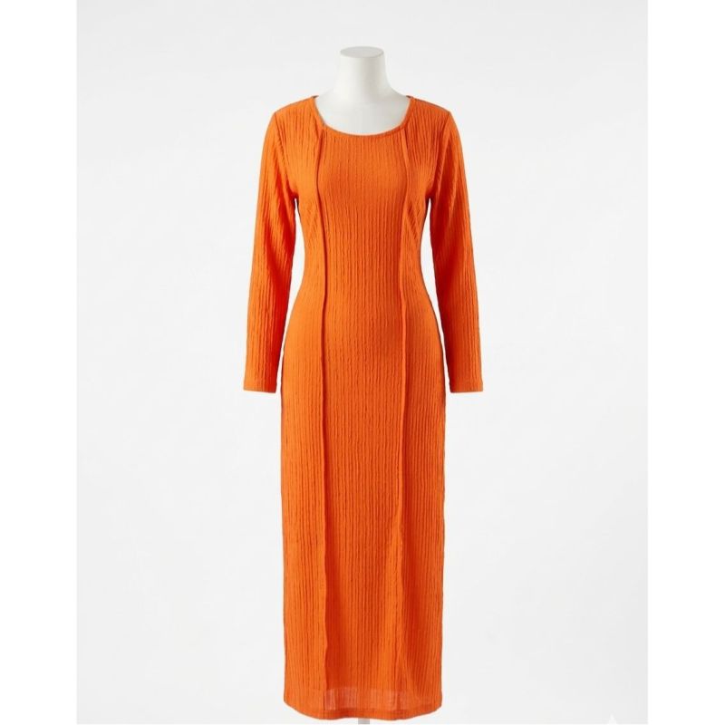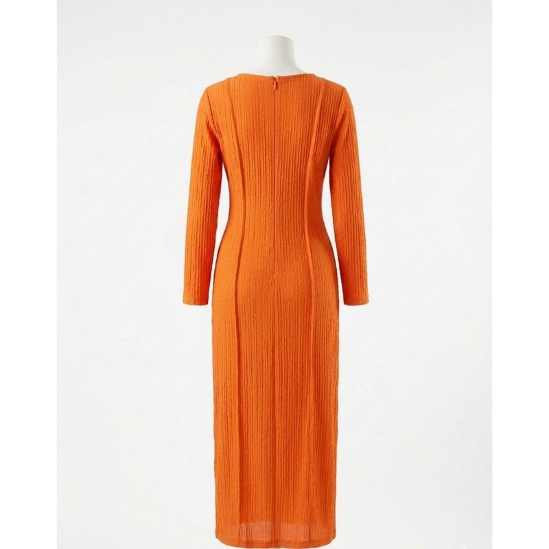 Long-Sleeve Ribbed Orange Maxi Dress