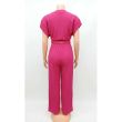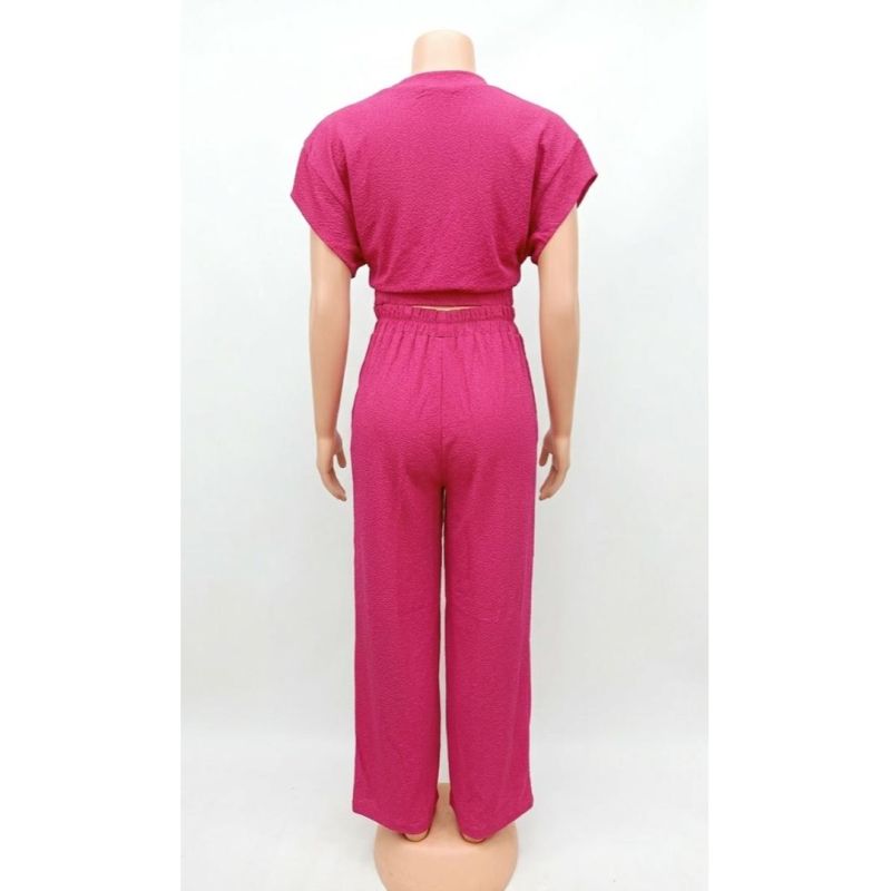 Magenta Textured Short-Sleeve Top and High-Waist Trousers Set
