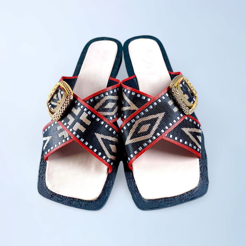 Men's Fabric Design Black And Red Slides