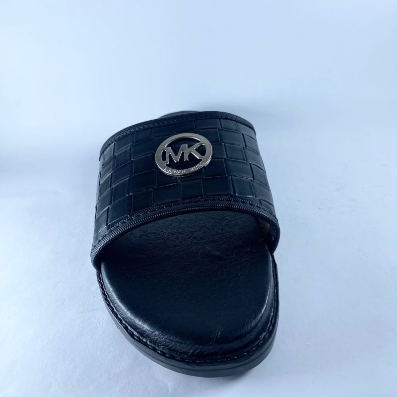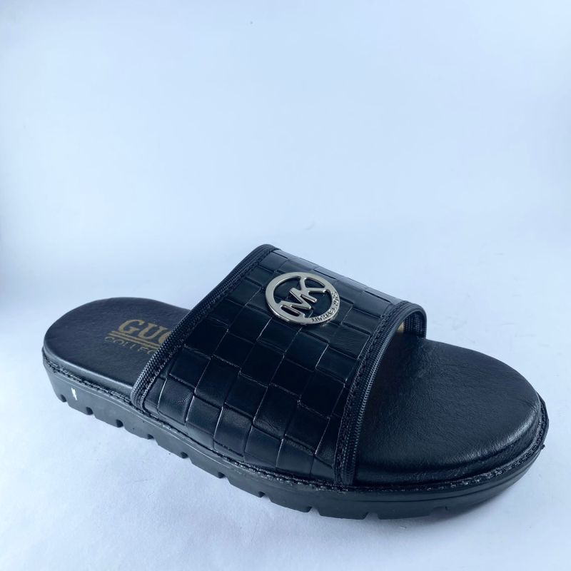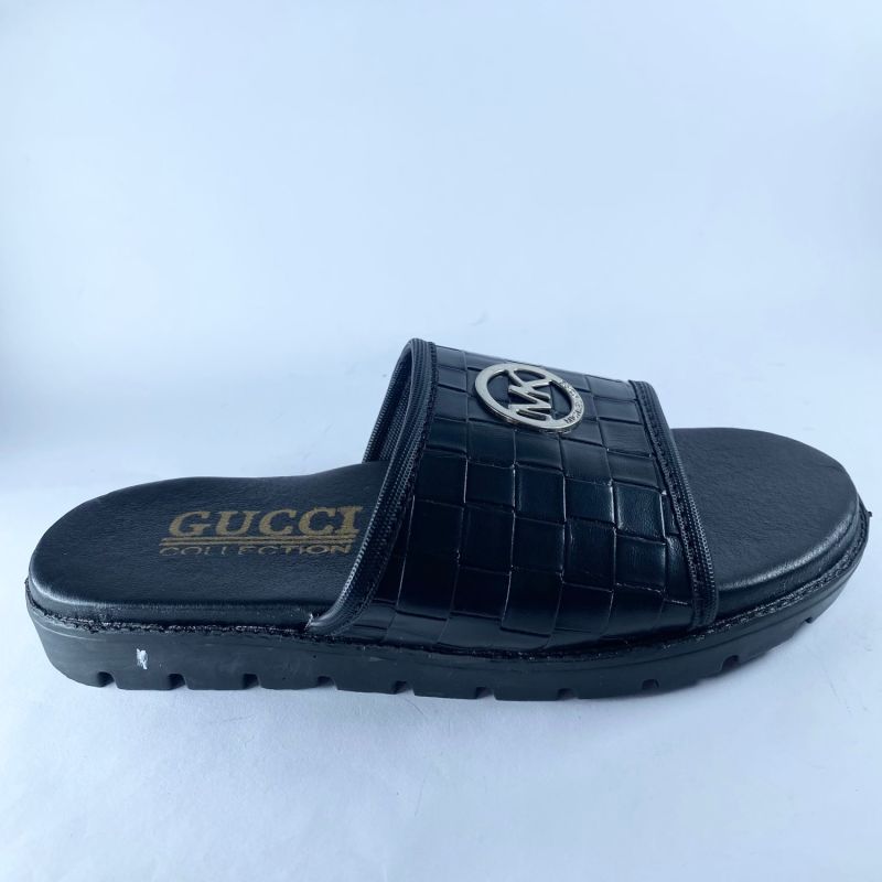 Men's Stylish Black Leather Slides 2024 Design