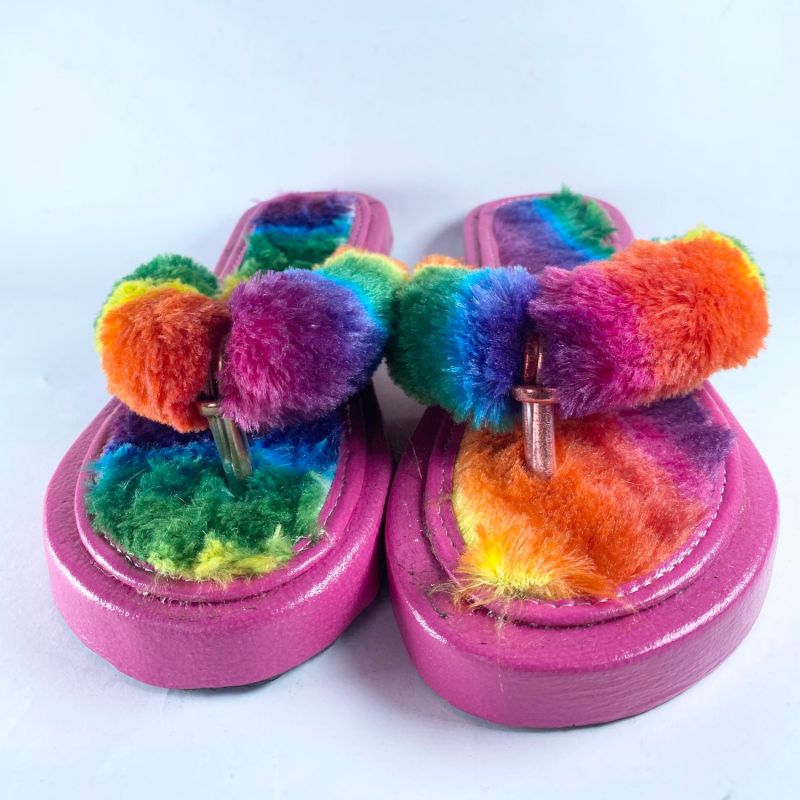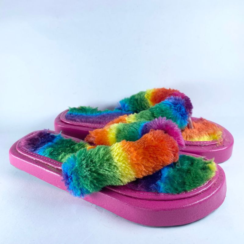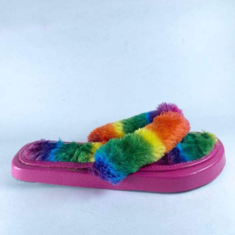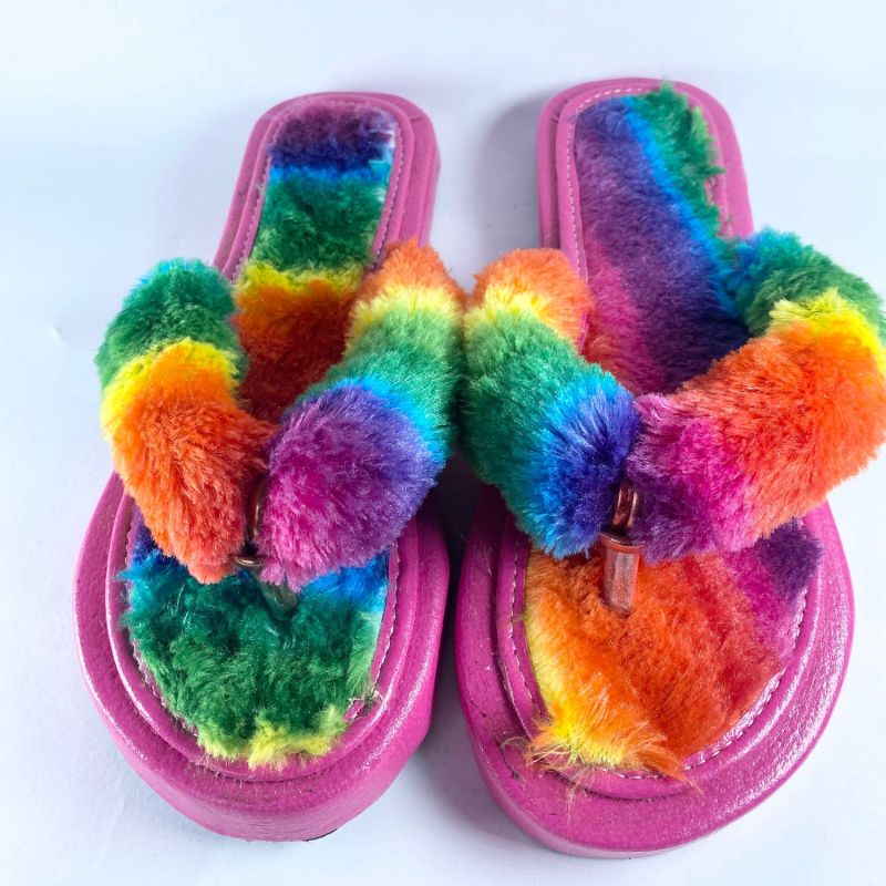 Multi Colour Fluffy Ladies Indoor Slipper Flat Shoes