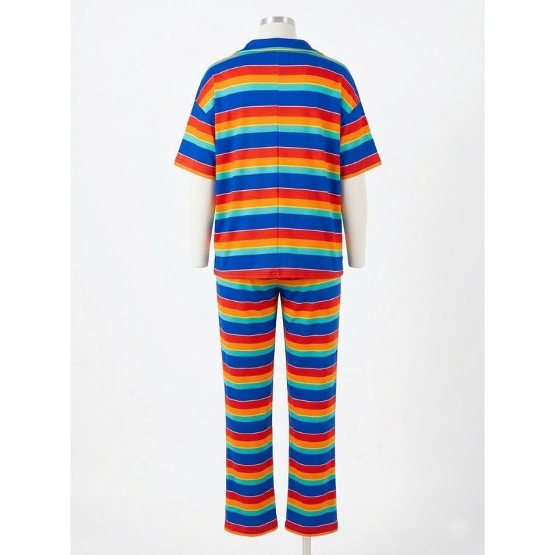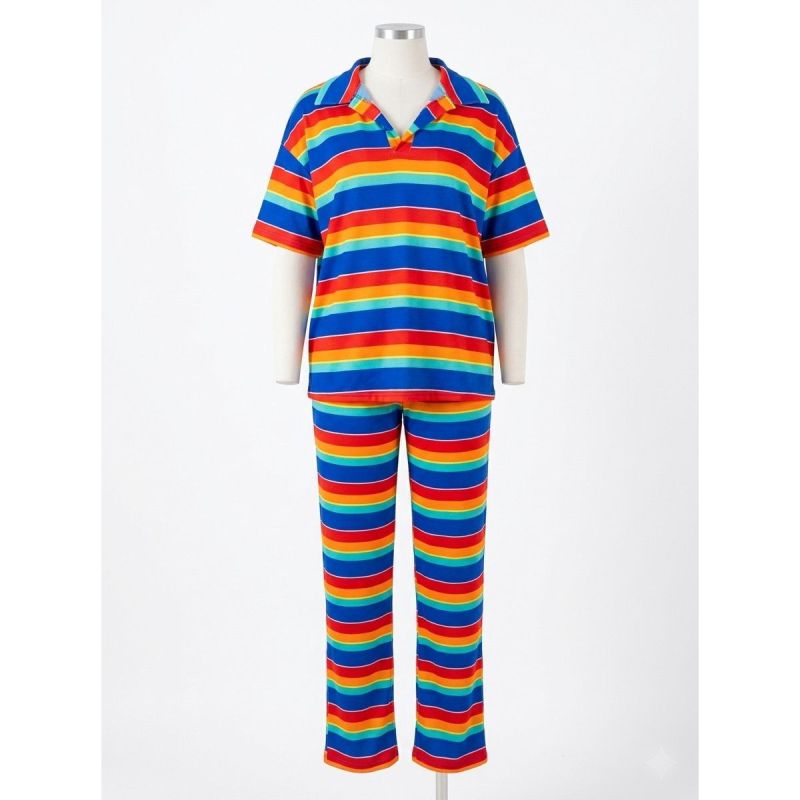 Multicolor Horizontal Rainbow Striped Polo Shirt and Trousers Set