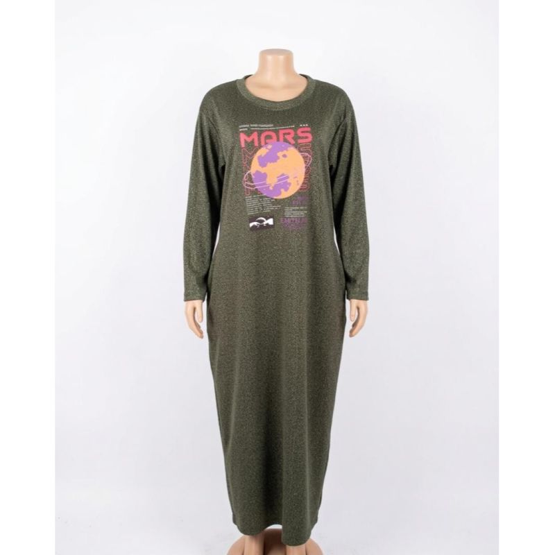 Olive Green "MARS" Graphic Long Sleeve Maxi Dress