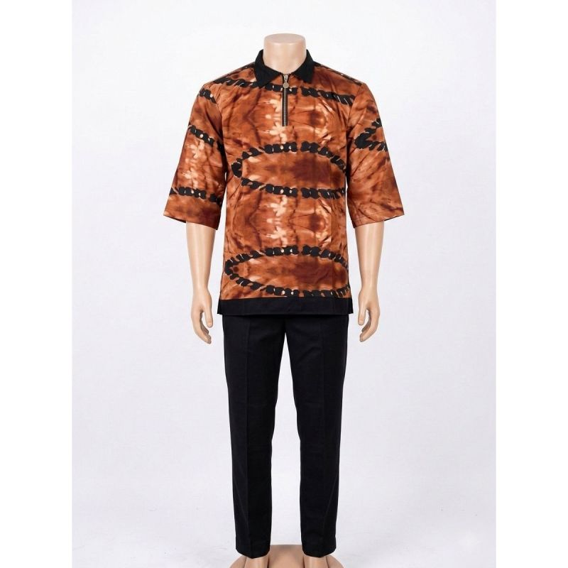 Orange and Brown Tie-Dye Quarter-Zip Polo with Black Trousers Set