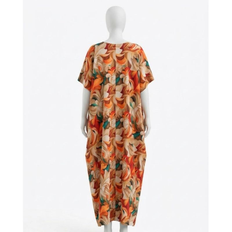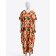 Orange and Cream Abstract Floral Print Batwing Maxi Dress
