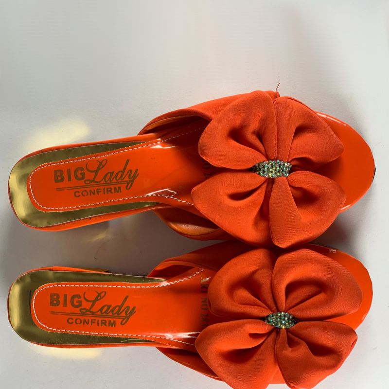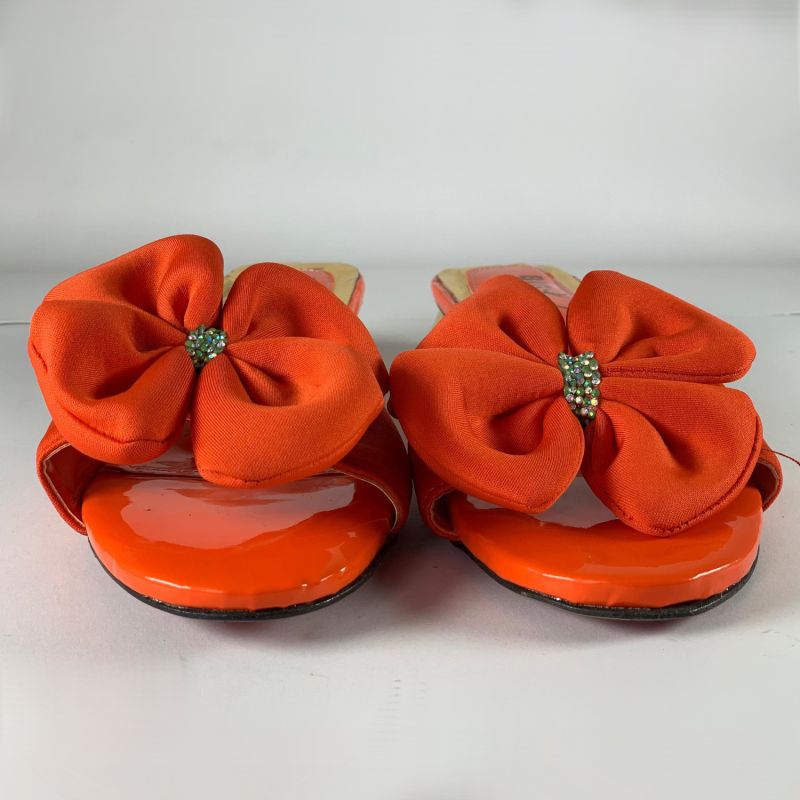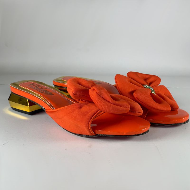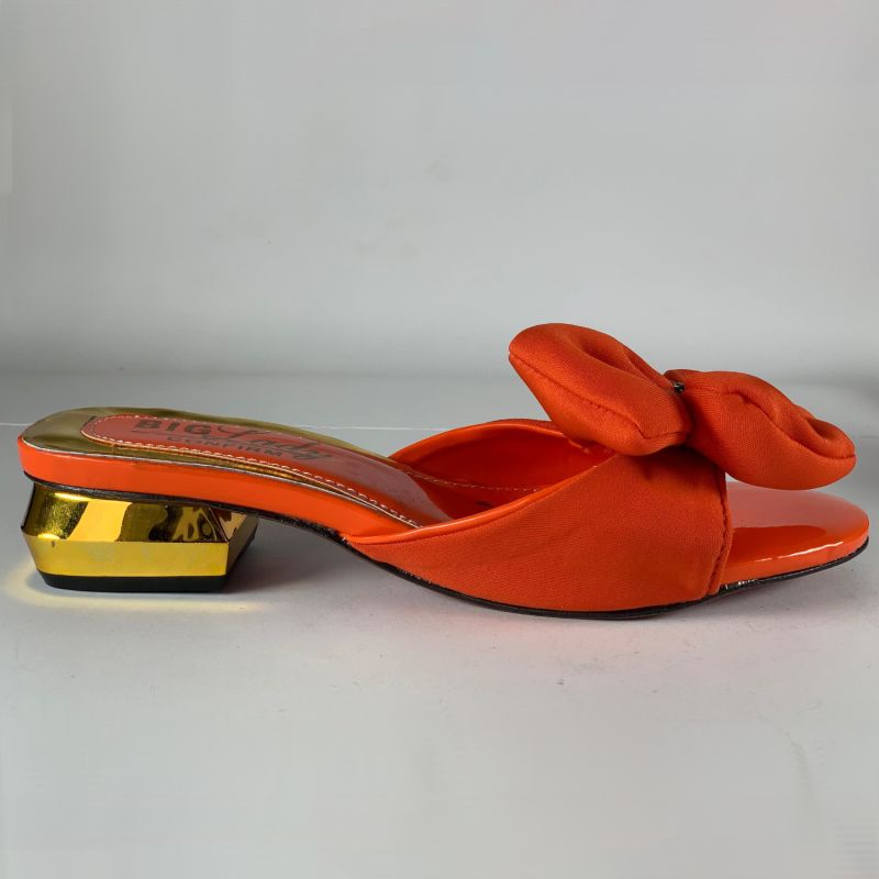 Orange and gold low heels ladies shoes with flower design top