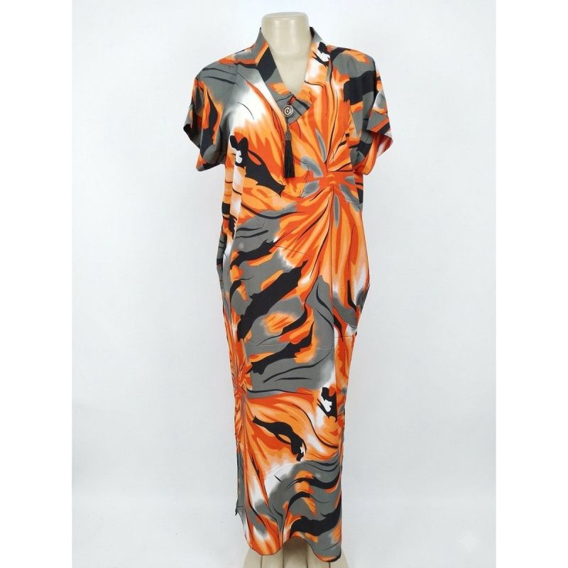 Orange & Gray Abstract Print Maxi Dress with Twist Back Detail
