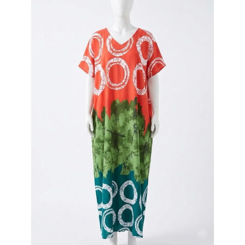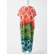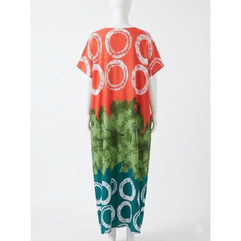 Orange, Green, and Teal Color-Block Maxi Dress with White Circle Print