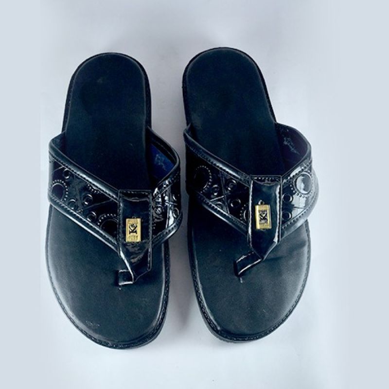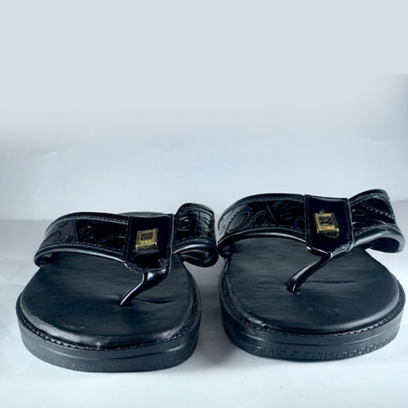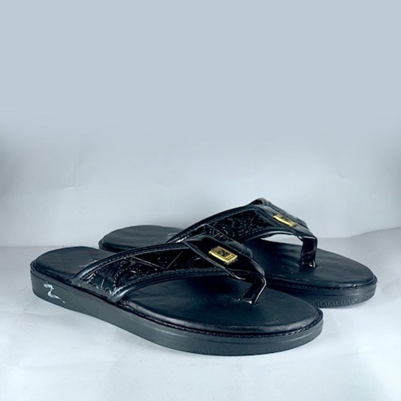 Pattern black men slippers with fancy