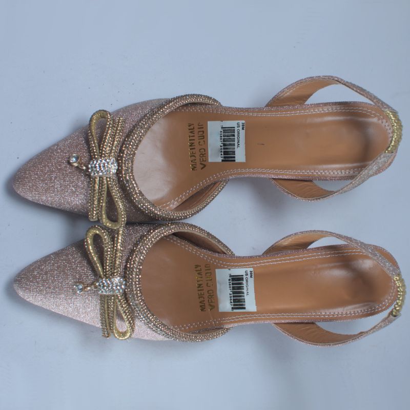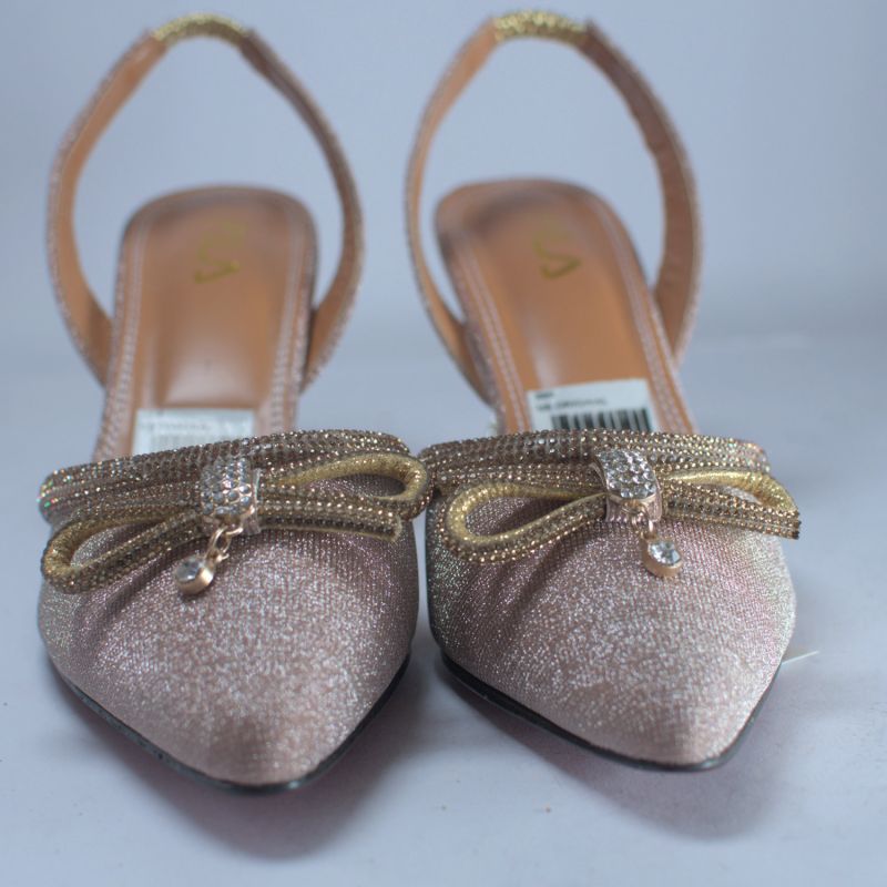 Peach Colour Women's Bridal High Heel, Half Shoe with Rhinestone Bow Tie Thin Heel