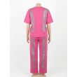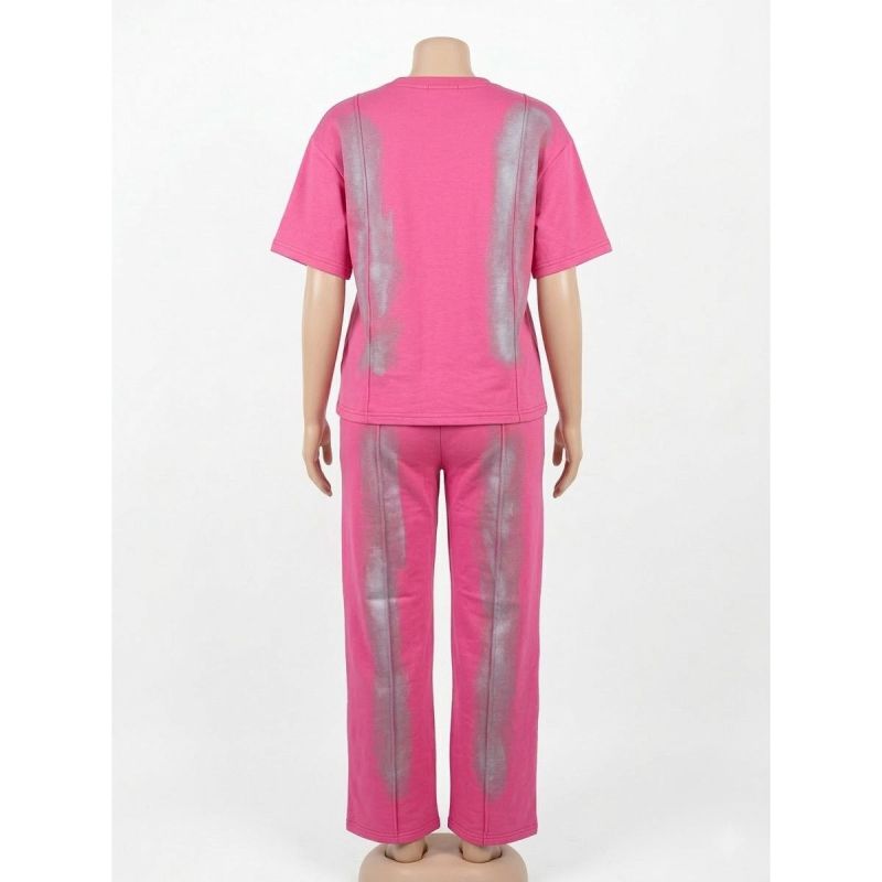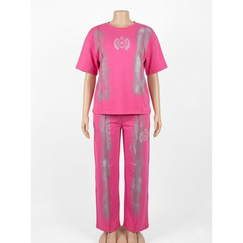 Pink Crest Graphic T-Shirt and Trousers Set with Silver Wash Detail