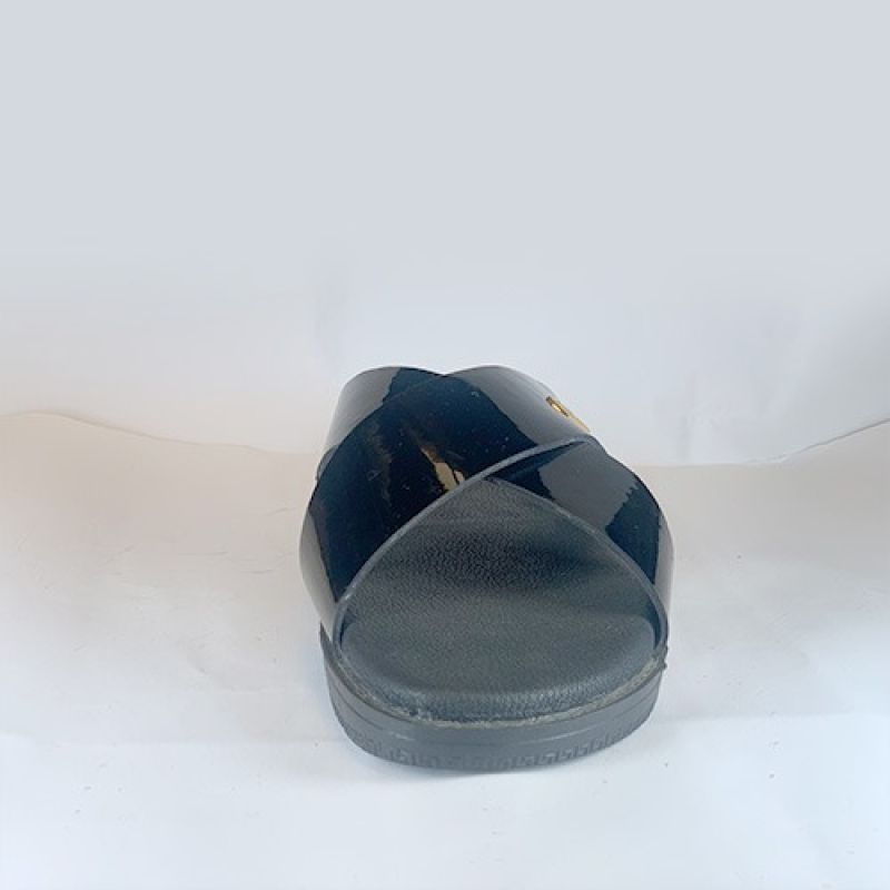 Plain black simple cross slippers