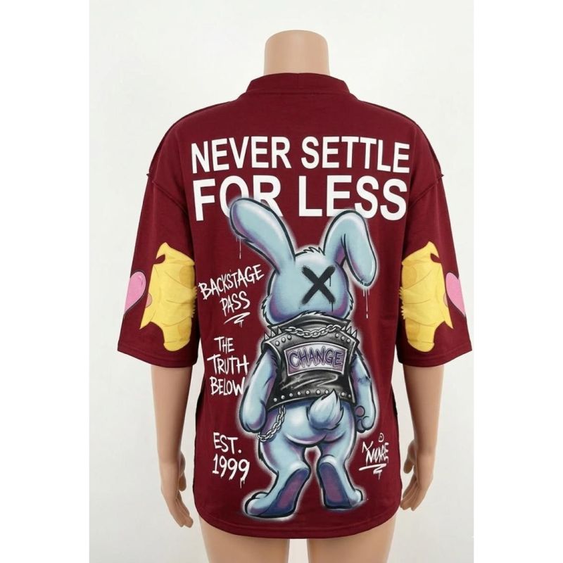 "POVERI BLACK" Rabbit Graphic Oversized T-Shirt