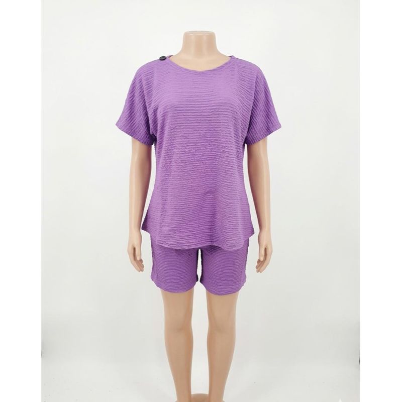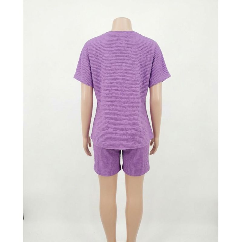 Purple Textured Plissé Short-Sleeve Top and Shorts Set