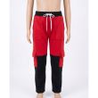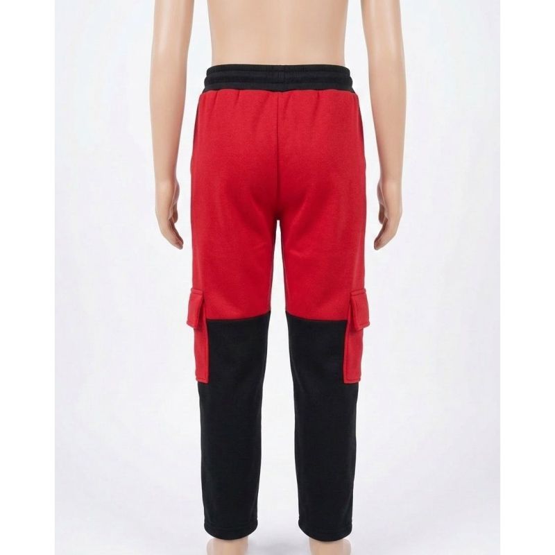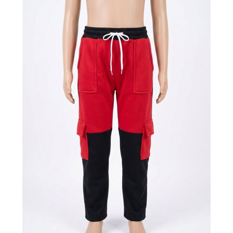 Red and Black Color-Block Cargo Sweatpants with White Drawstring