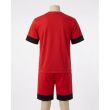 Red and Black Color-Block T-Shirt and Shorts Set with "Snrs" Script
