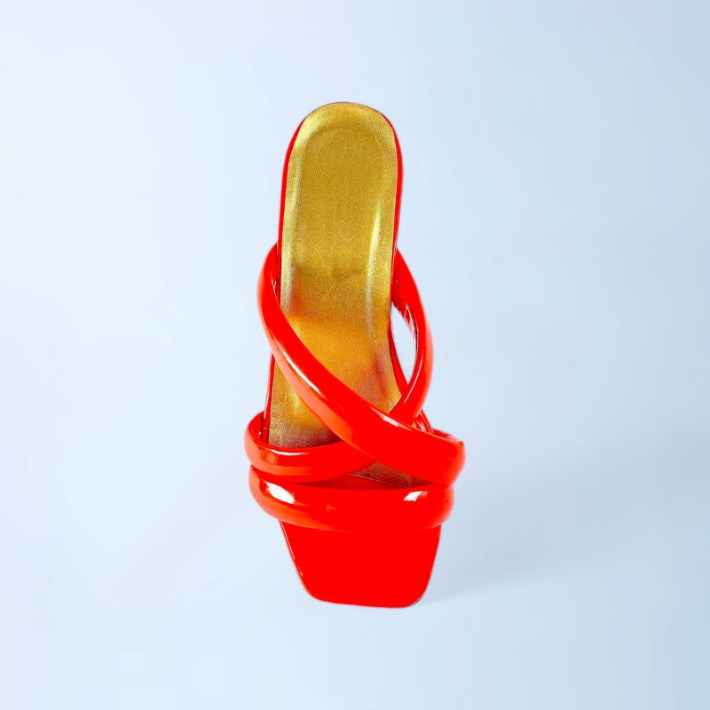 Red Crossed Fashion High Heel Slippers For Women