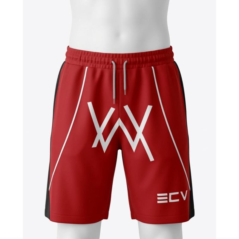 Red Graphic Athletic Shorts with "ECV" Branding